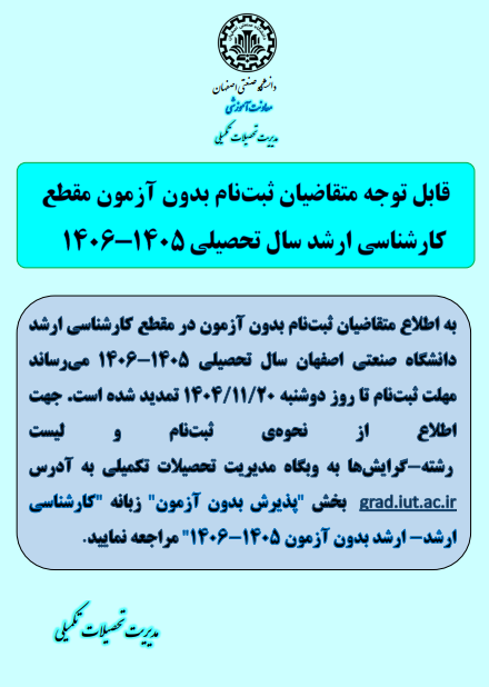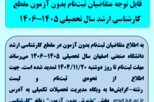 اطلاعیه تمدید فراخوان ثبت نام بدون آزمون کارشناسی ارشد سال تحصیلی1405-1406